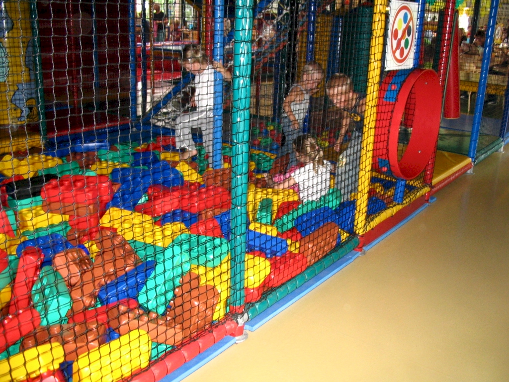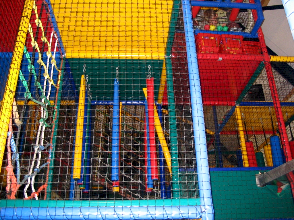 Het leuke hierbij is, dat je kruip-door, sluip-door, via een doolhof met hindernisbaan naar boven kan klimmen.