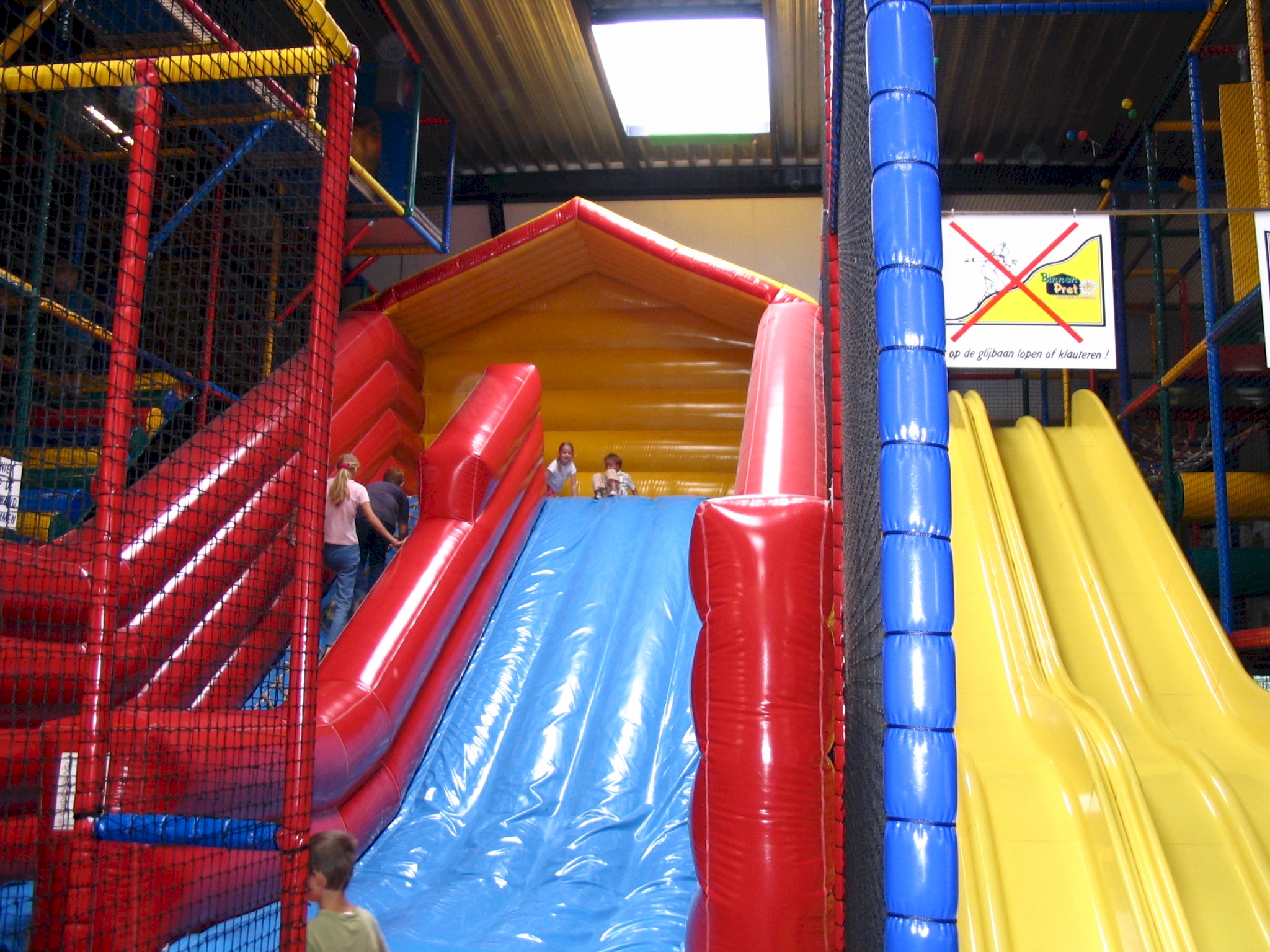 Op de airtrampoline kan lekker worden gesprongen, gegleden of gelegen. Betreden zonder schoenen. Geschikt tot 12 jaar.