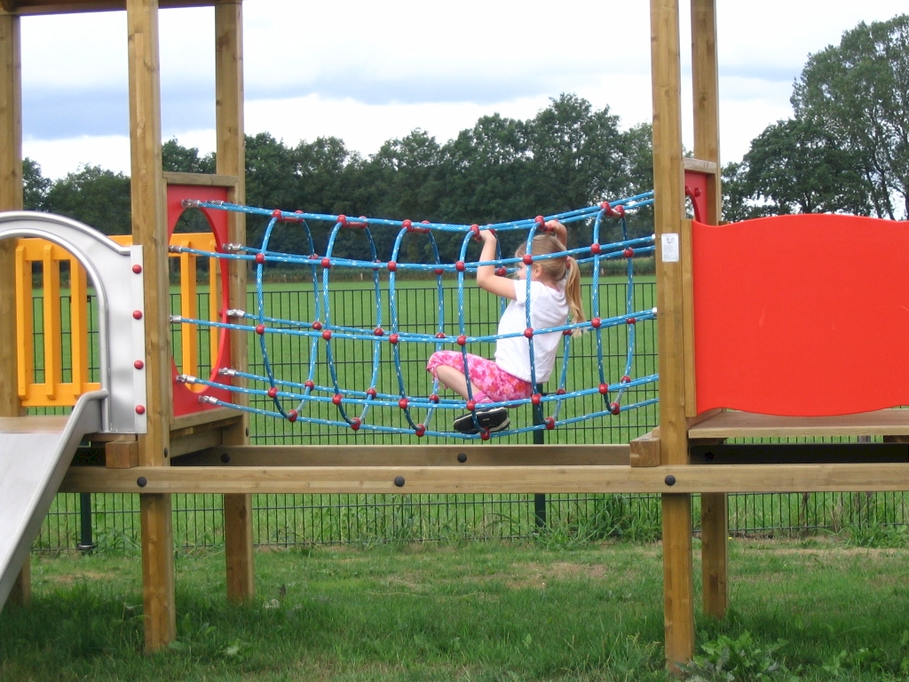 Op dit klimrek met vele mogelijkheden kan uw kind zich lekker uitleven. Klimmen, door een touwtunnel kruipen en glijden.