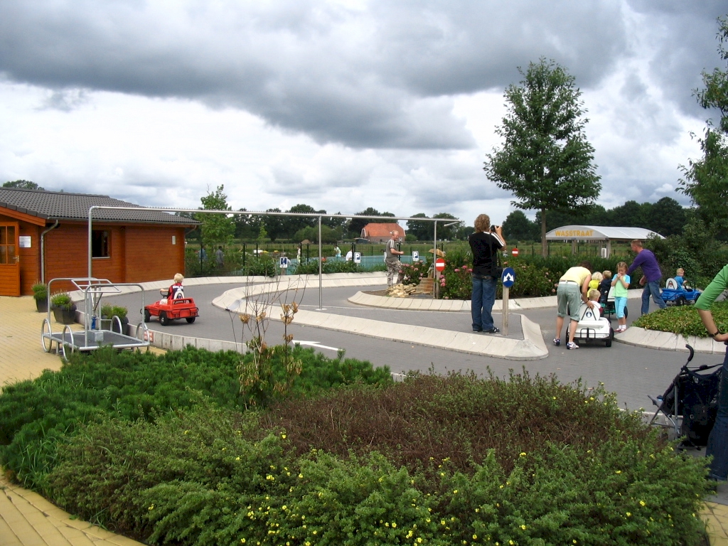 Op met de trapauto rondrijden, de auto in de wasstraat doen en ook even tanken. Daarbij wel op de aangegeven richting letten.