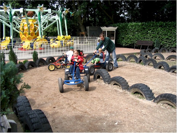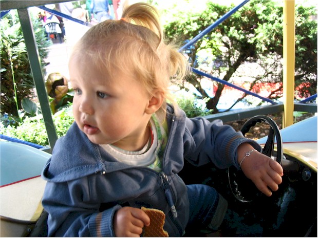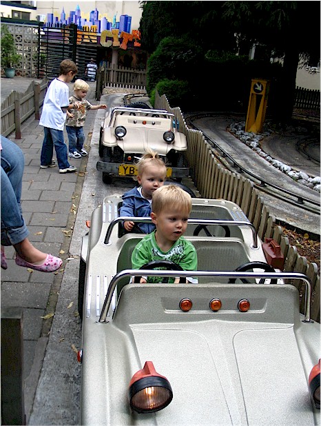 De skelters en botsauto's zijn te groot voor mij. Ik pak lekker de draaimolen, is veel leuker. Er zitten bovendien toeters op, mooi zeg.