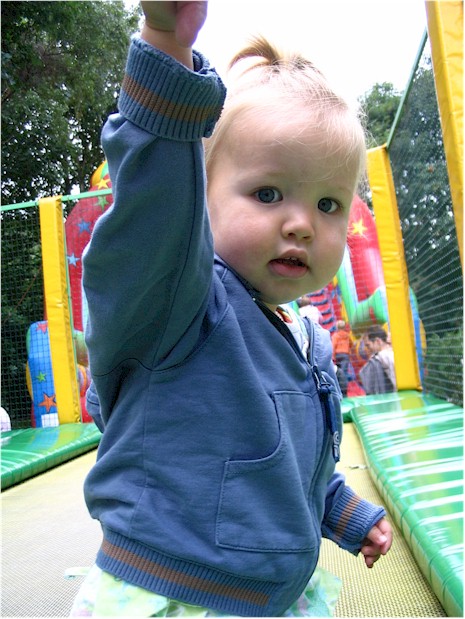 En als je eenmaal door hebt dat het op de trampoline niet eng is, kun je het zelfs zonder dat mama je vasthoudt.